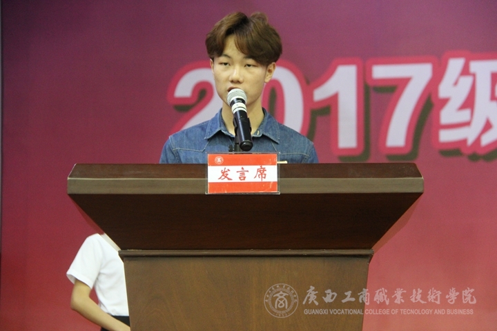 新生代表上臺發(fā)言時,表示在大學里,一定會努力學習,盡快適應大學生活,樹立遠大目標,為學院的發(fā)展做貢獻。