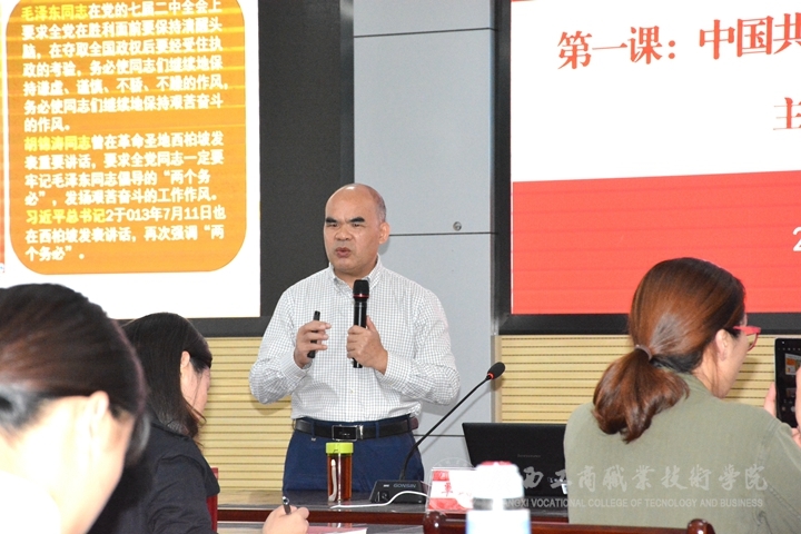 ? ? ? ? 最后,覃武云結(jié)合我們建黨和建國(guó)所取得的理論成果,提出幾點(diǎn)思考,即我們共產(chǎn)黨員要在不斷趕考中,增強(qiáng)“四個(gè)自信”,道路自信、理論自信、制度自信、文化自信、樹立正確“三觀”的世界觀、人生觀、價(jià)值觀。