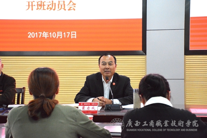 ? ? ? ? 2017 年 10 月 17 日下午,我院召開青年教師黨的基本知識(shí)專題培訓(xùn)班開班動(dòng)員會(huì),學(xué)院黨委書記覃武云作開班動(dòng)員講話并主講題為《中國(guó)共產(chǎn)黨的歷史》(趕考及思考)專題理論學(xué)習(xí)第一課。本次動(dòng)員會(huì)由學(xué)院黨委副書記、紀(jì)委書記蒙啟成主持,學(xué)院 35 歲以下(含 35 歲)全體青年教師共110多人作為學(xué)員參加了動(dòng)員會(huì)。