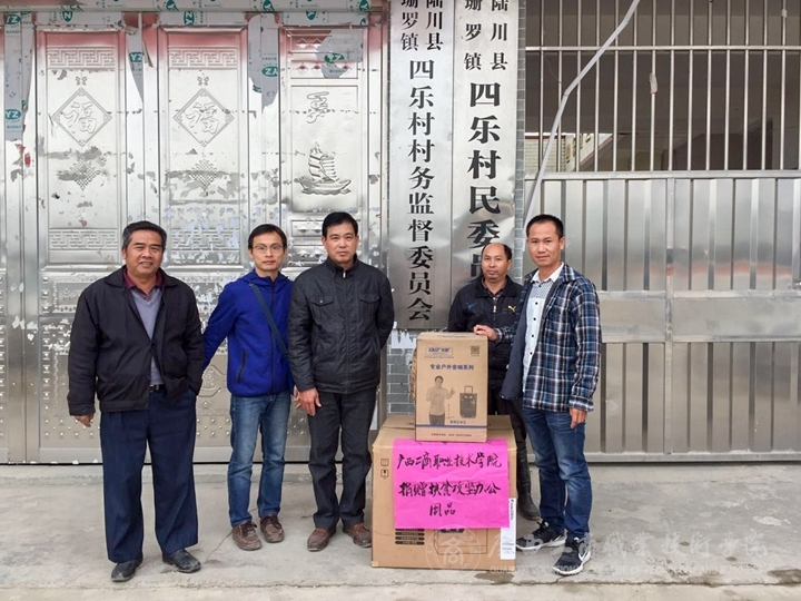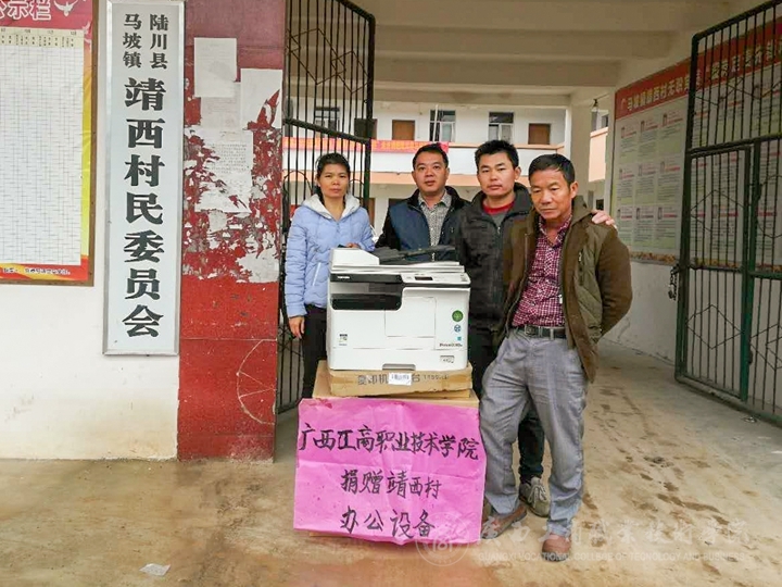 11月上旬,廣西工商職業(yè)技術(shù)學(xué)院將價(jià)值9萬(wàn)多元的多功能復(fù)印機(jī)、電腦、打印機(jī)、空調(diào)等一批辦公用品分別送至學(xué)院定點(diǎn)幫扶的貧困村陸川縣馬坡鎮(zhèn)靖西村、珊羅鎮(zhèn)四樂(lè)村、清湖鎮(zhèn)水亭村、清湖鎮(zhèn)那若村、古城鎮(zhèn)八角村、古城鎮(zhèn)良村村等6個(gè)貧困村,并組織人員完成了安裝工作。該批辦公用品由學(xué)院現(xiàn)代教育中心采購(gòu)。