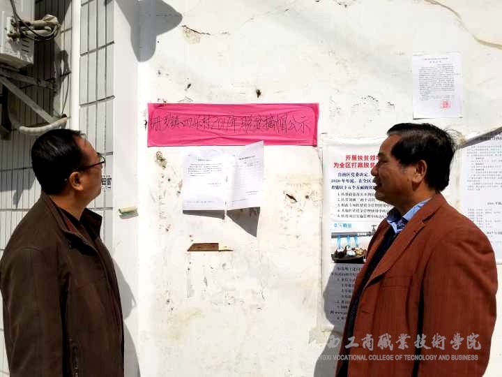 ? ? ? ? 同時,黨委宣傳部、黨委學工部還將本次活動作為本部門的黨員活動日,由蒙啟成率隊,在不打擾當?shù)卣9ぷ鞯那闆r下,走訪調(diào)研了四樂村建設(shè)情況并參觀走訪了珊羅鎮(zhèn)鎮(zhèn)府,瀏覽了其宣傳欄、公告欄,并仔細查看了珊羅鎮(zhèn)四樂村2017年脫貧摘帽公示情況。