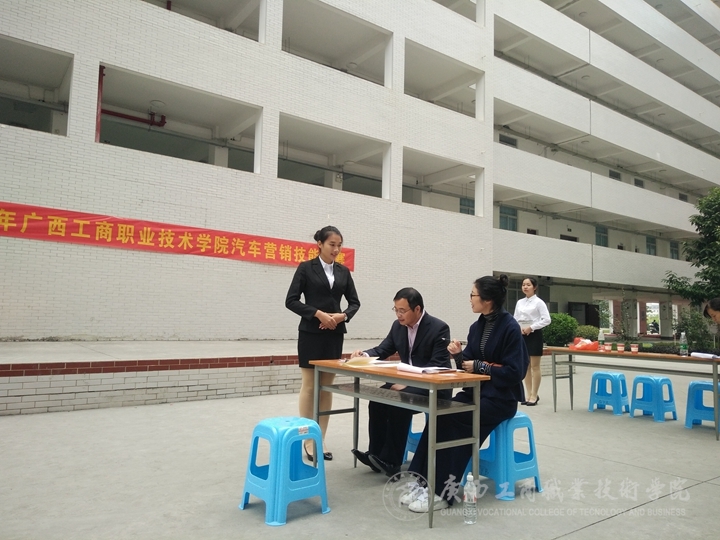 ? ? ? ? ? 2017年12月10日上午,廣西工商職業(yè)技術(shù)學(xué)院汽車營(yíng)銷技能大賽正式拉開(kāi)帷幕。比賽評(píng)委由舒江云老師、郭靜老師、張煌強(qiáng)老師擔(dān)任。