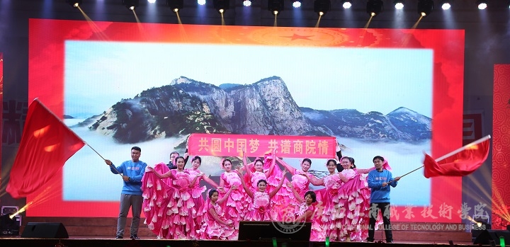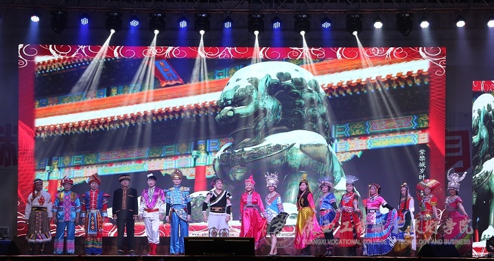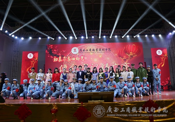 ? ? ? 整場晚會精彩不斷,高潮迭起,觀眾歡呼聲此起彼伏。晚會在社科部全體教師的《不忘初心,壯麗起航》中落下帷幕。晚會穿插的互動節(jié)目吸引著現(xiàn)場觀眾的積極參與,臺上臺下互動頻繁,融為一體。本次晚會在老師和同學(xué)們的共同努力下取得圓滿成功。以“初衷不忘心向黨,使命牢記鑄廣商”為主題,給同學(xué)們帶來了一場視覺與聽覺的文化盛宴。晚會結(jié)束后,全體工作人員與參演的教師、學(xué)生一起上臺合影留念。