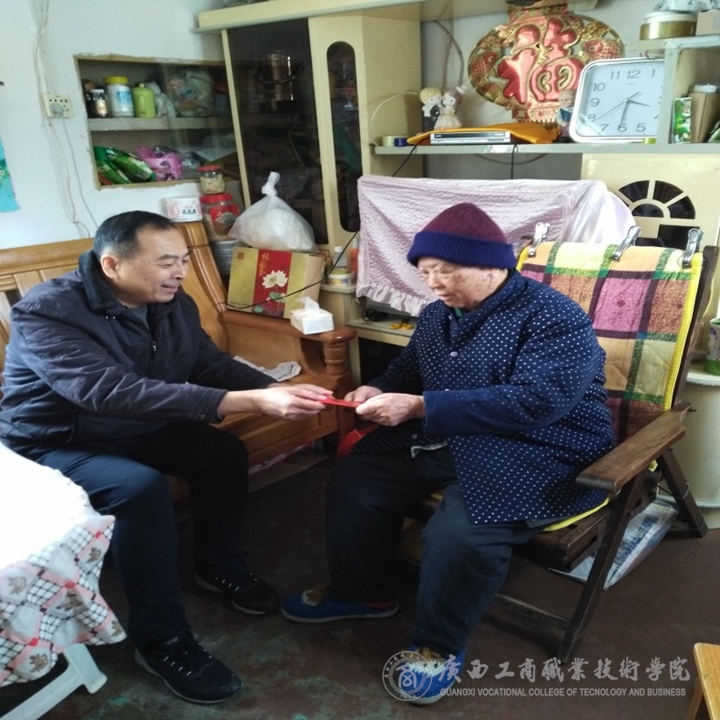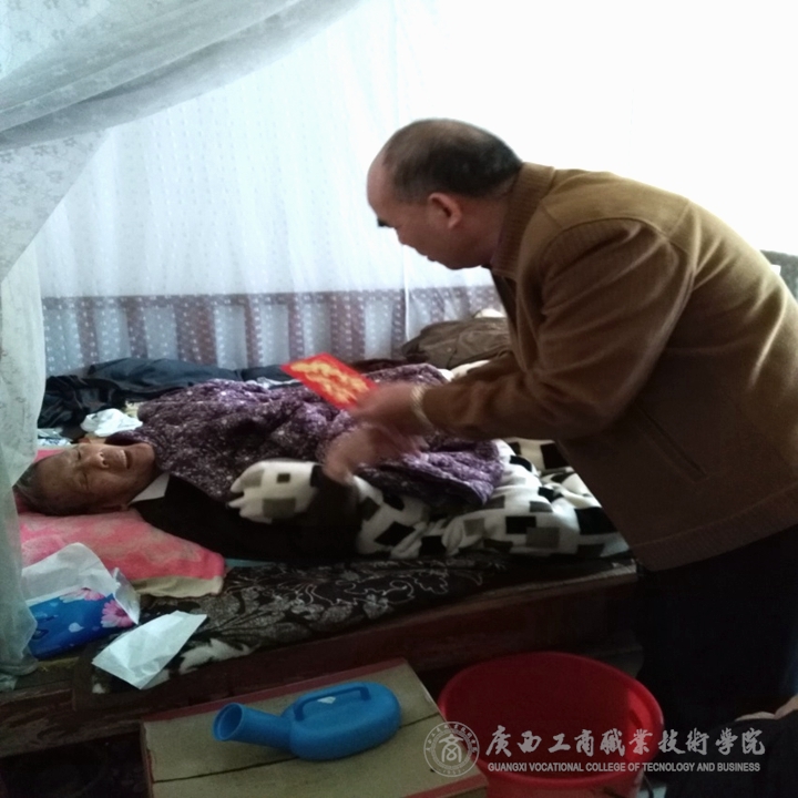 ? ? ? ??學(xué)院黨委書記覃武云、組織部長(zhǎng)蔣百平一行到家看望慰問(wèn)我院高齡老人梁惠忠、學(xué)院老領(lǐng)導(dǎo)黃永蓬同志。并與老同志及其家人親切交談,感謝老同志長(zhǎng)期以來(lái)對(duì)學(xué)院發(fā)展做出的貢獻(xiàn),希望他們今后一如既往地關(guān)注支持學(xué)院事業(yè)發(fā)展,并向他們致以新年祝福。