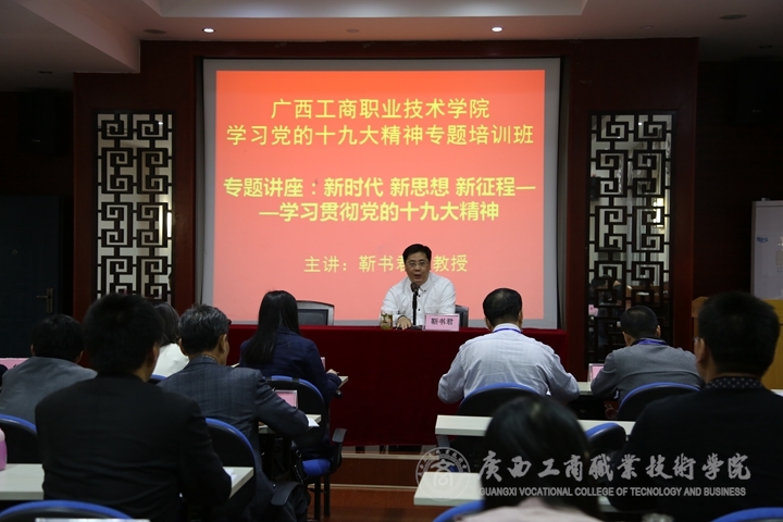 ? ? ? ? 開班儀式結(jié)束后,第二期培訓立即進入第一課的專題講座:新時代 新思想 新征程——學習貫徹黨的十九大精神。講座由廣西師范大學馬克思主義學院副院長靳書君教授為學員解讀黨的十九大精神。靳書君教授圍繞站在什么樣的歷史起點、實現(xiàn)什么樣的奮斗目標、關于舉什么旗、關于走什么路、關于以什么樣的精神面貌去走等方面結(jié)合實際案例,以豐富的數(shù)據(jù)內(nèi)容、獨特的視角深刻解讀了黨的十九大精神。靳教授全程脫稿解說,理論功底深厚,講座緊貼實際、風趣幽默、通俗易懂,對學員深入學習貫徹好黨的十九大精神具有很強的針對性和指導性。