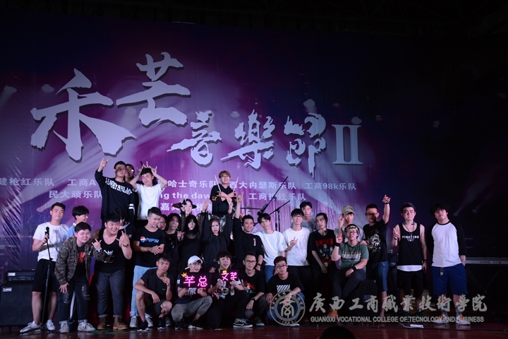 ? ? ? ? 隨后,南職“哈士奇樂(lè)隊(duì)”、西大“內(nèi)瑟斯樂(lè)隊(duì)”、工商“98K樂(lè)隊(duì)”、特邀嘉賓“五樓茶會(huì)”、民大“頑樂(lè)隊(duì)”、工商“拆遷樂(lè)隊(duì)”、工商“Calling the dawn樂(lè)隊(duì)”輪番上陣,風(fēng)格不一卻同樣精彩的音樂(lè)引爆廣商院。在音樂(lè)的帶動(dòng)下,現(xiàn)場(chǎng)歡呼聲不斷,樂(lè)隊(duì)成員積極與場(chǎng)下觀眾互動(dòng),這是一場(chǎng)懷揣著熱愛(ài)音樂(lè)之心的人們的狂歡。