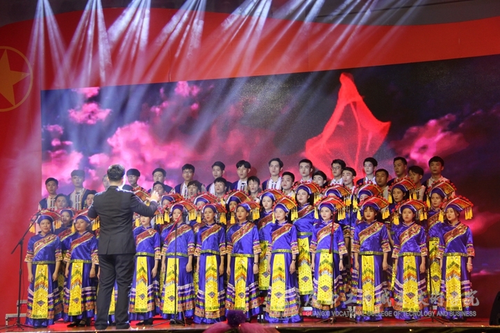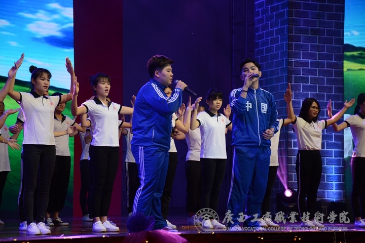 ? ? ? ? 接著,由經(jīng)管系帶來一首振奮人心、鼓舞士氣的情景朗誦與合唱《當(dāng)那一天來臨》 ,小品《我的英雄爺爺》贏得場下觀眾陣陣叫好。緊接著由財信系帶來了詩朗誦《閃耀吧青春的火光》和展示了近四十年來社會生活發(fā)生的變化的舞臺劇《改革開放四十年》。會計系帶來的手語舞《國家》則反映出了國與家、邦與民的深厚感情。馬力老師與院藝術(shù)團聲樂隊帶來的大合唱《海耕謠》、院藝術(shù)團舞蹈隊的舞蹈《中國媽媽》、楊艷老師與財信系合唱《在燦爛的陽光下》、經(jīng)管系情景歌舞《青春的選擇》、思政部思政沙龍的廣西方言朗誦《在中國大地上報道》、會計系《五四禮贊》和《我們的名字叫青春》等節(jié)目。精彩的節(jié)目讓觀眾們沉醉其中,現(xiàn)場歡呼不斷。最后,晚會在青年教師們給我們帶來的合唱《新的天地》中落下了帷幕。
