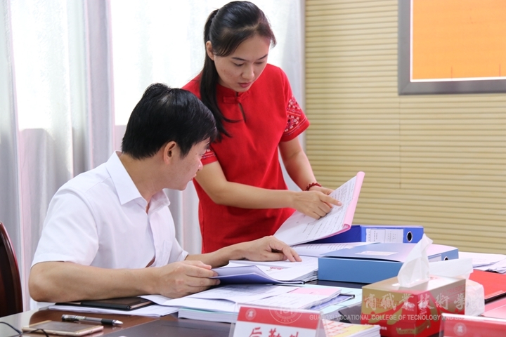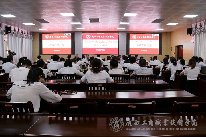 ??????? 2018年5月30日,廣西商業(yè)職業(yè)教育指導委員會驗收專家組羅生芳教授、田力軍教授、李慶文教授、陳佩琪注冊會計師、劉立新董事長及驗收工作人員黃恒拾、覃潔等一行7人,到我院開展2014-2015年度職業(yè)教育示范特色專業(yè)及實訓基地建設立項項目驗收工作,就我院工商企業(yè)管理、會計示范特色專業(yè)及實訓基地建設項目進行驗收。驗收會議在2119召開,學院院長陳杰、副院長李維出席會議,我院驗收工作領導小組全體成員、各部門,各單位主要負責人,各系教學副主任(分管項目建設)及工作人員,專業(yè)教研室正副主任、骨干老師,工商企業(yè)管理、會計項目匯報人,立項項目其他部門驗收工作人員、教務科研處工作人員等參與了此次會議。