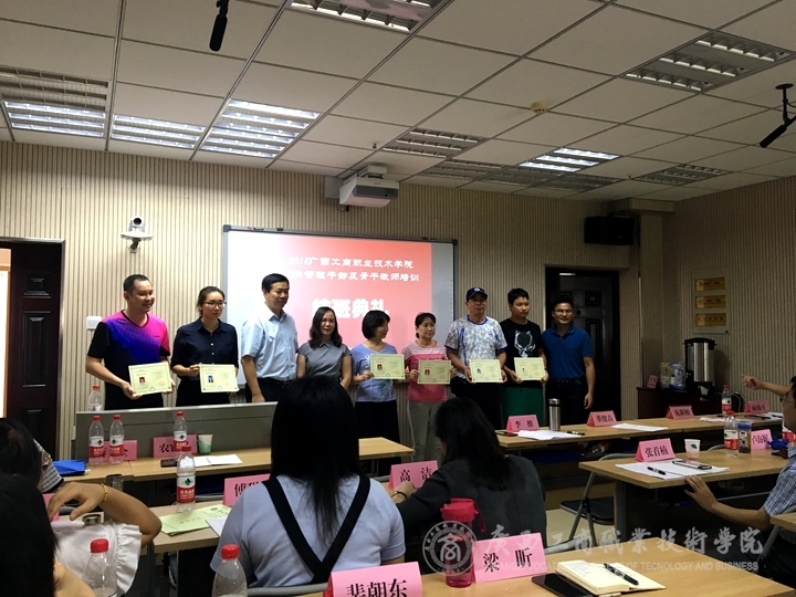 ??????? 理無專在,而學無止境也。本次培訓(xùn)班于7月1日開班,至7月5日結(jié)束,培訓(xùn)班教學內(nèi)容豐富,形式多樣,主要包括《團隊建設(shè)與管理能力》、《信息化教學能力提升實操》、《國家自科、社科項目申報經(jīng)驗分享》、《新時期教師師德師風》、《現(xiàn)代教育管理前沿思想》、《現(xiàn)代學徒制》、《行動導(dǎo)向的專業(yè)建設(shè)與課程開發(fā)》等專題講座,團隊戶外素質(zhì)拓展訓(xùn)練以及赴柳州職業(yè)技術(shù)學院開展的產(chǎn)教融合校際調(diào)研交流活動和一次分組討論活動。經(jīng)過5天緊張而有序的學習,學員們收獲頗豐。
