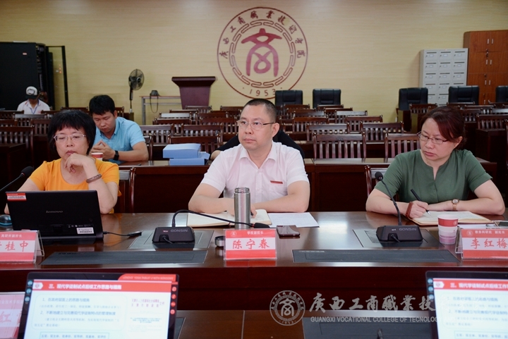 ? ? ? ? 為推動(dòng)我院做好2018年現(xiàn)代學(xué)徒制年檢工作,7月11日上午,我院于鵬飛校區(qū)教學(xué)樓視頻會(huì)議室召開第二批國(guó)家現(xiàn)代學(xué)徒制工作現(xiàn)場(chǎng)調(diào)研會(huì)。副院長(zhǎng)陳寧春、教務(wù)科研處李紅梅教授、葉桂中教授、各系試點(diǎn)專業(yè)領(lǐng)導(dǎo)及項(xiàng)目負(fù)責(zé)人參加本次會(huì)議。