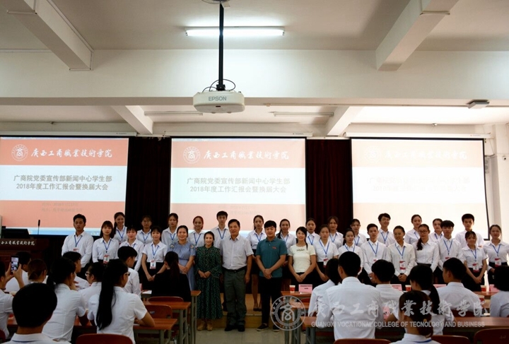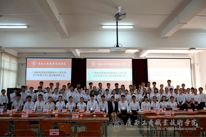 ??????? 2018年7月17日下午,學(xué)院黨委宣傳部新聞中心2018年度工作匯報會暨換屆大會在鵬飛校區(qū)報告廳召開。宣傳部部長韋勝強(qiáng)、部長助理陳宇寧、新聞中心指導(dǎo)老師莫惘、馮艷瓊、王衛(wèi)蘭,新聞中心全體成員及學(xué)院各大學(xué)生組織代表參加了本次大會。