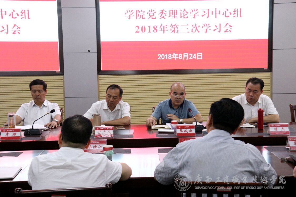 ? ? ? ? ?2018年8月24日上午,我院于鵬飛校區(qū)教學(xué)樓視頻會議室召開了學(xué)院黨委理論學(xué)習(xí)中心組2018年第三次學(xué)習(xí)會。學(xué)院領(lǐng)導(dǎo)、黨委委員、學(xué)院各部門主要負(fù)責(zé)人、學(xué)院各黨總支、直屬黨支部書記、學(xué)院工會、團(tuán)委負(fù)責(zé)人參加本次會議。本次會議由學(xué)院黨委書記覃武云主持。