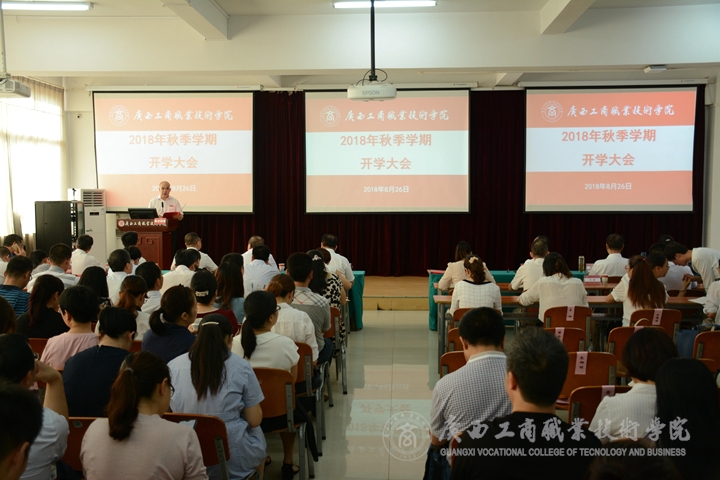 2018年8月26日上午,我院于鵬飛校區(qū)報(bào)告廳舉行2018年秋季學(xué)期開學(xué)大會(huì),全體學(xué)院領(lǐng)導(dǎo)及教職員工參加了本次會(huì)議。會(huì)議由學(xué)院黨委書記覃武云主持,學(xué)院院長陳杰在會(huì)上作開學(xué)報(bào)告。