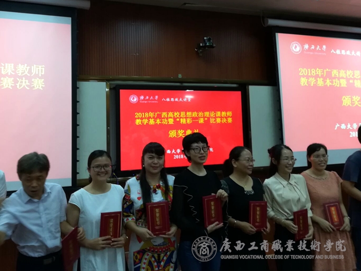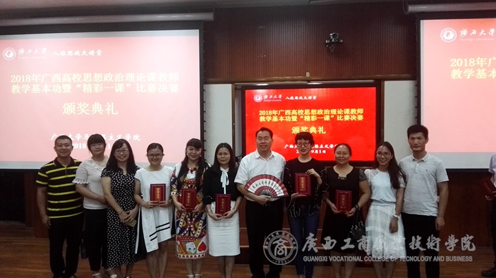 ? ? ? ? ?2018年 9月1日,由自治區(qū)高校工委、教育廳主辦,廣西大學(xué)馬克思主義學(xué)院承辦的2018年廣西高校思想政治理論課教師教學(xué)基本功暨“精彩一課”比賽決賽落下帷幕,我部林勇靈老師參賽,部門全體老師現(xiàn)場觀摩。