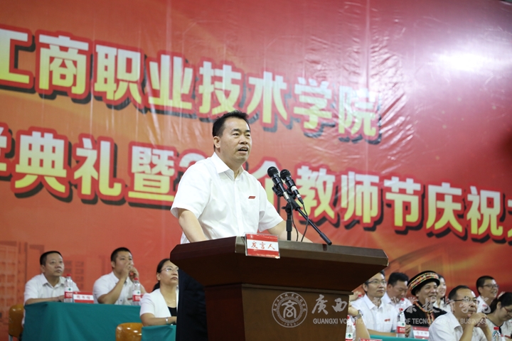 學(xué)院院長陳杰為新生開學(xué)典禮致辭,陳杰代表學(xué)院對(duì)新入學(xué)的2018級(jí)3678名新生表示熱烈的歡迎,為培養(yǎng)人才付出辛勤汗水和心血的教師表示感謝。會(huì)上,陳杰發(fā)表題為《今天的太陽和昨天的不一樣》講話。他說,今天的廣商院與昨天的有三個(gè)不一樣。第一,今天的學(xué)校和昨天的不一樣。廣商院65年來,數(shù)度易址,多次更名,歷經(jīng)坎坷,不斷進(jìn)取。當(dāng)前學(xué)院已經(jīng)進(jìn)入“十三五”規(guī)劃的后半程,正從打造廣商院升級(jí)版向著爭(zhēng)創(chuàng)廣西“雙高”職業(yè)院校邁進(jìn)。第二,今天的老師和昨天的不一樣。教師隊(duì)伍的主打?qū)W歷,由專科主打、到本科主打、到研究生主打、到碩士主打,并向著博士帶頭人升級(jí)發(fā)展。第三,今天的學(xué)生和昨天的不一樣。今天的中國發(fā)生了歷史性變革,學(xué)生面對(duì)的環(huán)境今非昔比。會(huì)上,陳杰院長,尋找生日與教師節(jié)一天的同學(xué),他念出了學(xué)院查找到的十位生日與教師節(jié)一樣的新同學(xué)名單,為他們的18歲成人禮送上祝福。最后,陳杰祝同學(xué)們開學(xué)開心,好好學(xué)習(xí),天天向上,祝老師們節(jié)日愉快,身體健康,事事順利!祝廣商院前程似錦,碩果累累,明天更好!