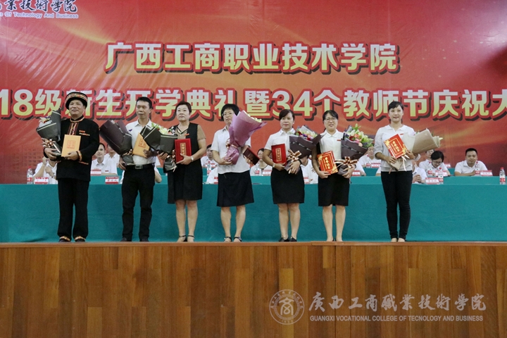 金秋九月,天朗氣清。2018年9月10日上午,學(xué)院于鵬飛校區(qū)文體館二樓舉行2018級(jí)新生開學(xué)典禮暨第34個(gè)教師節(jié)慶祝大會(huì)。學(xué)院黨委書記覃武云、院長陳杰、黨委副書記、紀(jì)委書記蒙啟成、副院長李仕欽、副院長李維、副院長陳寧春,各部門、各單位主要負(fù)責(zé)人、2018級(jí)輔導(dǎo)員、班主任、長期帶班和突出貢獻(xiàn)教職工,2018級(jí)全體新生等參加了本次會(huì)議。本次大會(huì)由學(xué)院副院長陳寧春主持。
