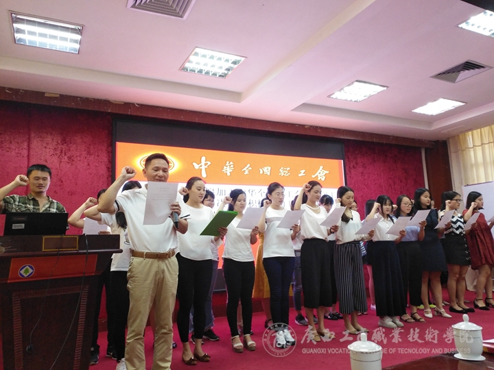 接著,蒙啟成主席對新會員的加入表示熱烈的歡迎,他希望通過入會儀式,能增強新會員的會員意識、責任意識,增強他們加入工會組織的光榮感、使命感和對學院的歸屬感。同時,蒙主席對工會干部提出三點要求,一要做好領路人,二要為年輕同志樹好榜樣,三要有無私奉獻精神,他表示,廣商院65年歷史厚實了我們的土壤,今后在大家的付出和呵護下,學院的明天必將更加美好!