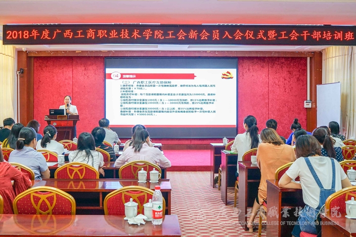 學院工會新會員入會儀式暨工會干部培訓班于9月14日下午在南寧市會議中心順利召開,學院工會蒙啟成主席、王桂玲副主席、陳春副主席出席了本次培訓,學院工會干部和新會員共同參會。本次培訓由學院工會王桂玲副主席主持。