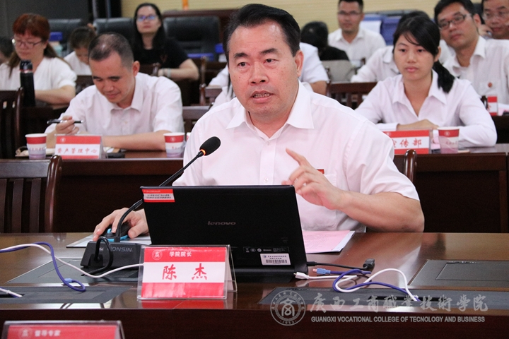 本次督導檢查工作會議共分四個流程。第一項議程:學院質(zhì)量診改工作匯報,學院領導匯報1年多來質(zhì)量診改工作推進情況。學院院長、黨委副書記陳杰代表學院從質(zhì)量診改工作概述、質(zhì)量診改工作的特色與亮點、質(zhì)量診改工作的思考等方面向督導檢查專家組全面匯報了學院內(nèi)部質(zhì)量保證體系與改進工作情況,提出了學院質(zhì)量診改的工作設想。