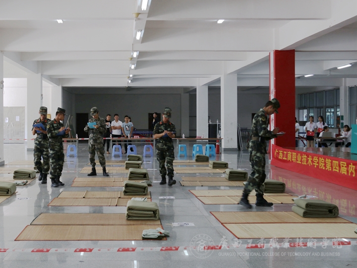 近日,廣西工商職業(yè)技術(shù)學(xué)院新生軍訓(xùn)疊被內(nèi)務(wù)決賽在學(xué)院鵬飛校區(qū)文體館一樓舉行。出席本次內(nèi)務(wù)能手決賽的老師及嘉賓有:李金霖老師、練東曦老師以及武警廣西總隊直屬支隊王裕捷排長和教官們。本次內(nèi)務(wù)能手整理大賽由葉珊珊主持。