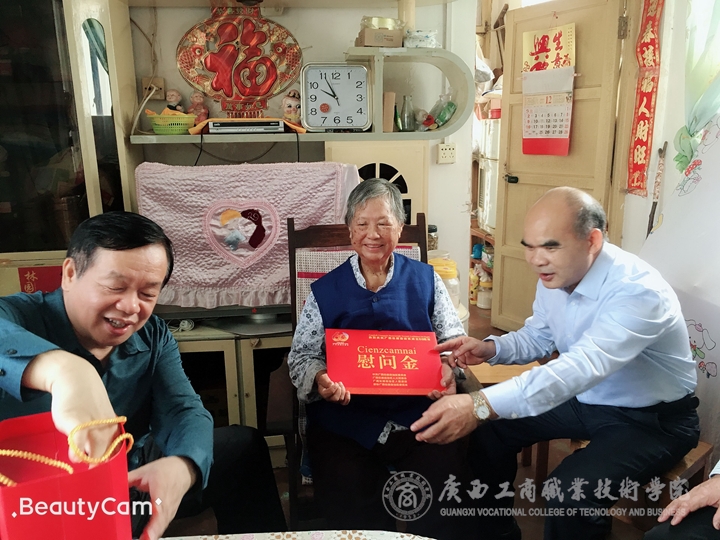 甲子輝煌,八桂飄香。在自治區(qū)成立60周年大慶前夕,自治區(qū)糧食局和物質(zhì)儲(chǔ)備局領(lǐng)導(dǎo)邱東副巡視員一行在我院黨委書記覃武云同志陪同下,走訪慰問我院離休干部文九齡和巫賽英兩位同志。向他們致以崇高敬意和誠摯問候,感謝他們數(shù)十年為糧食事業(yè)、教育事業(yè)發(fā)展作出的貢獻(xiàn),并送去慰問金和慰問品,把黨和政府的關(guān)懷及時(shí)送到老黨員老同志手中。