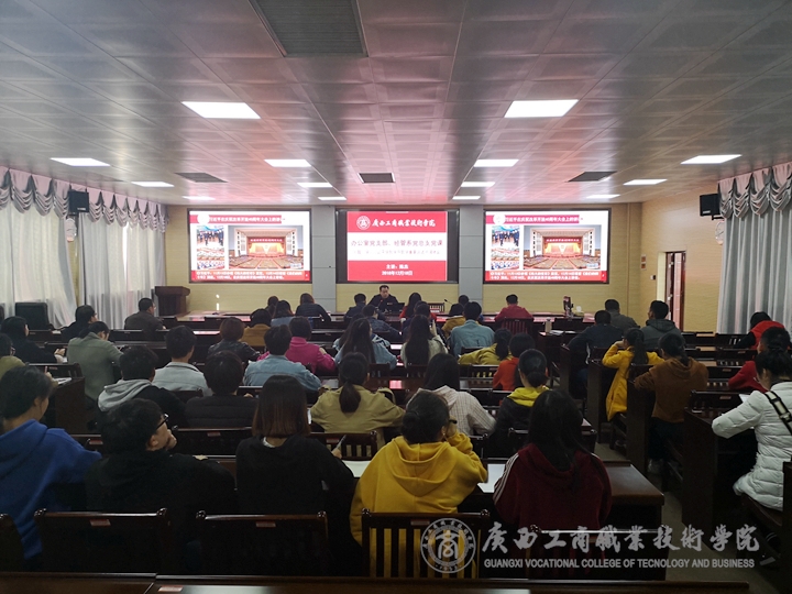 2018年12月18日下午,學(xué)院院長(zhǎng)陳杰同志在2119視頻會(huì)議室為辦公室黨支部、經(jīng)管系黨總支上黨課。此次黨課由辦公室黨支部書記覃遠(yuǎn)霞主持,辦公室黨支部全體黨員、經(jīng)管系黨總支教師黨員、學(xué)生黨員及入黨積極分子參加了此次黨課的學(xué)習(xí)活動(dòng)。