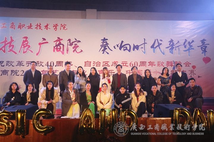 近日,我院在鵬飛校區(qū)文體館二樓舉辦了 “歌舞技展廣商院,奏響時代新華章”慶祝改革開放40周年、自治區(qū)成立60周年歌舞晚會暨廣商院2018年藝術(shù)專業(yè)技能大賽,本次比賽由學(xué)院公共基礎(chǔ)部承辦,學(xué)院大學(xué)生藝術(shù)團(tuán)協(xié)辦。比賽邀請了廣西大學(xué)田昀艷副教授、廣西藝術(shù)學(xué)院白玲老師和胡郢老師、中國好聲音廣西賽區(qū)評委韋艷艷老師、廣西城市職業(yè)學(xué)院客座教授呂榮林老師擔(dān)任評委,學(xué)院部分教師代表、學(xué)生代表也觀看了本次比賽。
