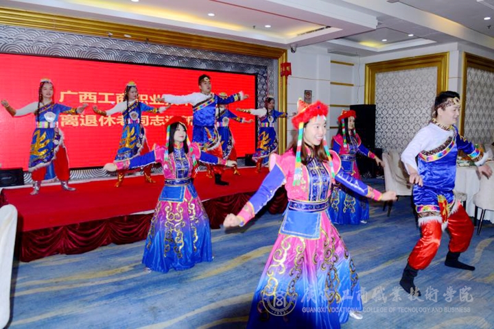學(xué)院領(lǐng)導(dǎo)非常重視老干工作,學(xué)院黨委副書記蒙啟成同志代表學(xué)院黨委出席,并送上祝福。此次活動(dòng)分兩部分舉行,離退休教職工養(yǎng)老保險(xiǎn)待遇政策解讀和迎新表演。學(xué)院人事處邀請廣西社會(huì)保險(xiǎn)事業(yè)局的同志為離退休教職工做《機(jī)關(guān)事業(yè)單位養(yǎng)老保險(xiǎn)待遇》相關(guān)內(nèi)容的解讀,聽完講座后,離退休教職工們表示感謝組織對(duì)他們的關(guān)心,讓他們對(duì)工資待遇新政策有了全新地認(rèn)識(shí)和了解。隨后,教師團(tuán)支部的青年教師代表為離退休教職工表演了舞蹈《蒙古迪》,祝福老教師身體健康,闔家幸福。退休教師們的節(jié)目也精彩紛呈,李奕珊老師進(jìn)行詩歌朗誦《沁園春?長沙》,唐碧環(huán)老師表演印度舞,甘敏軍等老師表演精彩的旗袍秀,將活動(dòng)推向高潮。 ??