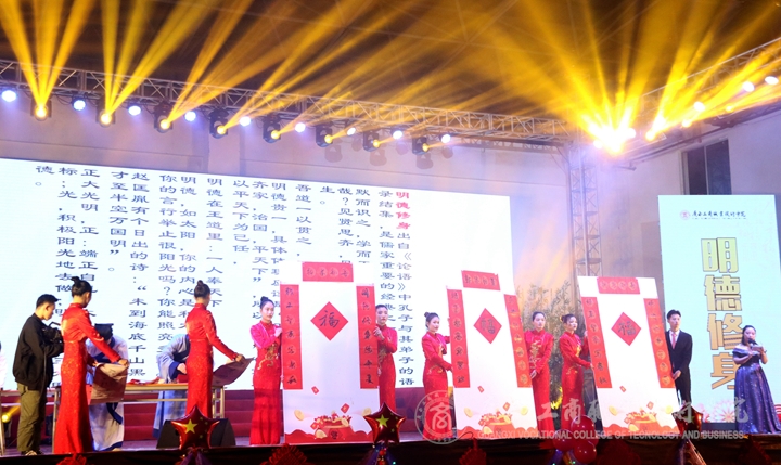 《奮斗廣商院》中,街舞協(xié)會(huì)帶來的街舞《Titans breaking》轟炸全場,現(xiàn)場觀眾紛紛舉起手中的閃光燈為他們打call。據(jù)了解,此節(jié)目曾經(jīng)榮獲2018-2019年全國啦啦操聯(lián)賽(南寧站)公開青年丁組集體街舞自選動(dòng)作第一名,舞者充滿爆發(fā)力的舞蹈將晚會(huì)現(xiàn)場的氛圍推向新的高潮;學(xué)院大學(xué)生藝術(shù)團(tuán)禮儀隊(duì)、學(xué)院大學(xué)生記者團(tuán)和學(xué)院鴻軒書畫協(xié)會(huì)帶來的禮儀書畫《禮》祝大家在新的一年里辭舊迎新、心想事成;隨后由青年教師代表羅素貞、趙瑩等帶來的舞蹈《蒙古迪》;學(xué)院大學(xué)生藝術(shù)團(tuán)聲樂隊(duì)帶來的歌曲聯(lián)唱《追夢赤子心》;財(cái)信系帶來的影子舞《壯美之光》以新穎舞蹈的形式給觀眾帶來的視角心靈上的震撼;最后以練東曦老師、學(xué)院大學(xué)生藝術(shù)團(tuán)聲樂隊(duì)、妙音樂團(tuán)帶來的樂隊(duì)串燒《光輝歲月》為《奮斗廣商院》篇章畫上句號(hào)。