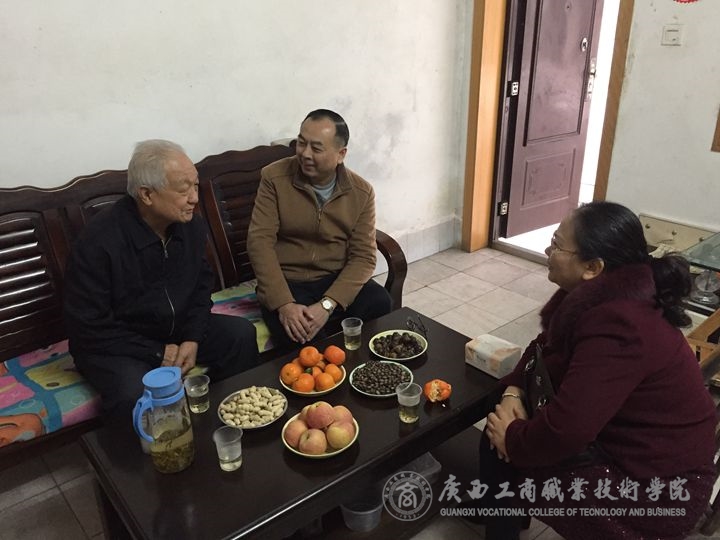 2019年1月25日,學(xué)院黨委覃武云書記在王桂玲副主席的陪同下,走訪慰問我院退休老同志廖精忠,關(guān)切地詢問他的退休生活和身體狀況,并送上了節(jié)日的慰問和新春的祝福。覃書記詳細(xì)地介紹了學(xué)院在校區(qū)建設(shè)方面的最新進(jìn)展和發(fā)展愿景,特別是武鳴新校區(qū)未來的發(fā)展方向,以及實(shí)現(xiàn)千畝地萬人校的愿望。
