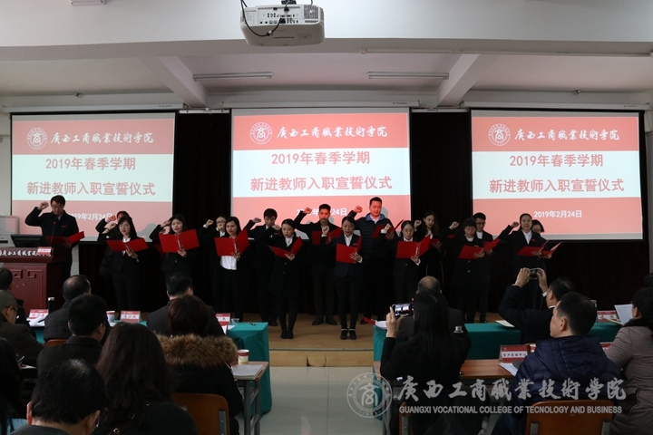 ? ? ? ? 會議的第二項議程是學院新進教師在黨委組織部(人事處)部長蔣百平的帶領下上臺進行入職宣誓儀式。“我宣誓:忠誠人民教育事業(yè),貫徹黨的教育方針。為人師表,敬業(yè)愛生。 勤于育人,善于創(chuàng)新,勇于實踐,樂于奉獻。為國家立心,為民族鑄魂!”隨著一個個宣誓人的名字同時響起,全場響起一片熱烈的掌聲,表達著學院教職員工們對新同事的歡迎與祝賀。