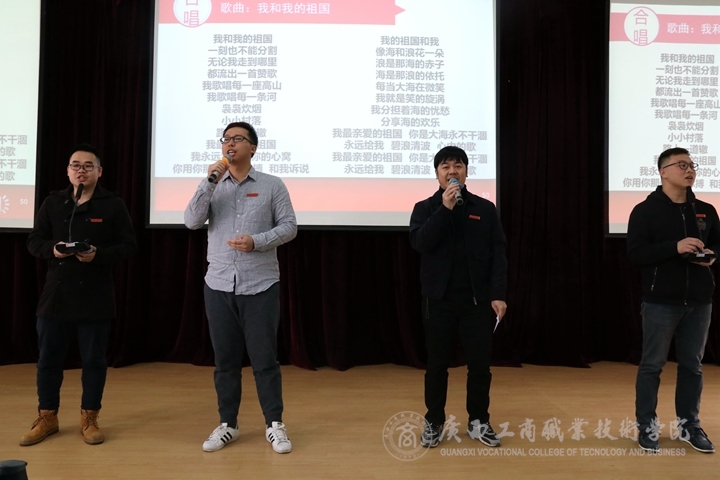 ? ? ? ?會議最后,由全體教職工大合唱《我和我的祖國》,優(yōu)美動人的旋律與樸實真摯的歌詞,表達出廣商院人對偉大祖國的衷心依戀和真誠歌頌。