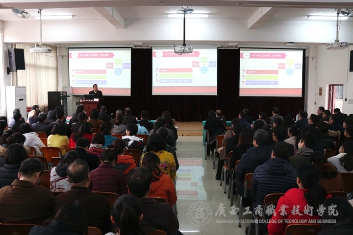 ? ? ? ? 2月24日上午,我院于鵬飛校區(qū)教學樓報告廳召開學院2019年春季學期開學大會。本次大會由學院黨委書記覃武云主持,院長陳杰在會上做開學工作報告。我院領導班子成員及全體教職工參加會議。