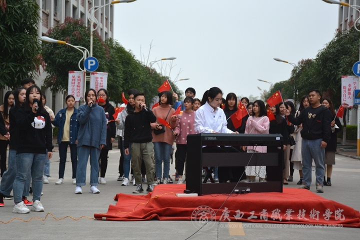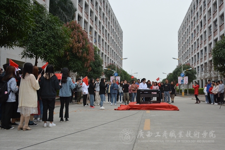 ??????? “我和我的祖國,一刻也不能分割”。2019年3月1日中午,洪亮的歌聲在校園主干道上唱響,院大學(xué)生藝術(shù)團、音樂協(xié)會等學(xué)生代表開展的快閃活動吸引了眾多師生前來觀看。