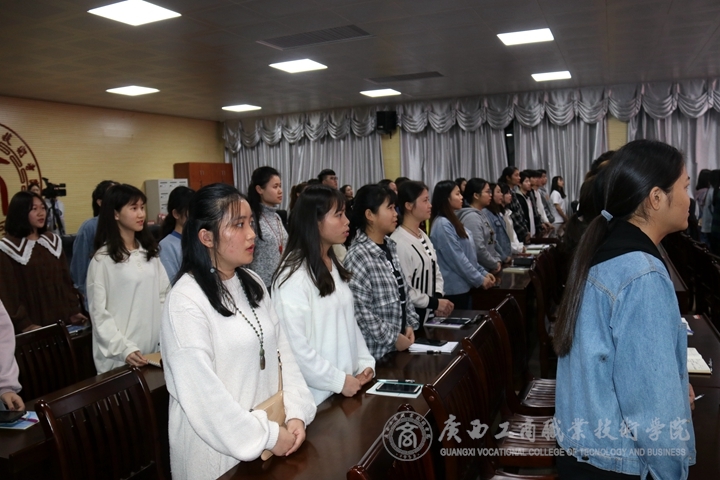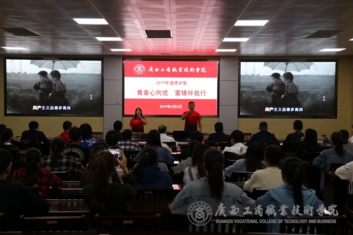 ??????? ?"學習雷鋒好榜樣,忠于革命忠于黨,愛憎分明不忘本,立場堅定斗志強。"2019年3月5日晚上,廣西工商職業(yè)技術學院鵬飛校區(qū)教學樓報告廳響起了一陣簡潔明快、鏗鏘有力的歌聲。這首曾經(jīng)感染和激勵著一代又一代人的《學習雷鋒好榜樣》,此時此刻,激起了在現(xiàn)場的廣商院人“唱雷鋒,學雷鋒,做雷鋒”的滿腔熱忱,營造著向上向善、德行天下的良好風尚。