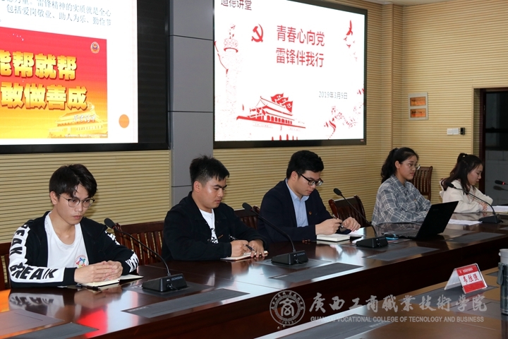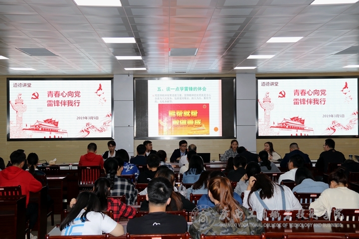 ??????? 齊唱一首學雷鋒歌曲《學習雷鋒好榜樣》,講授一堂樸實生動的《雷鋒精神:一座不朽的道德豐碑》德育課,講一個雷鋒故事,讀一篇雷鋒日記,講述一個身邊的雷鋒故事,分享一次學習體會……這樣豐富多彩的安排,讓人心潮澎湃,受益匪淺,精彩停不下來。原來,這是廣商院人在舉辦以“青春心向黨,雷鋒伴我行”為主題的特別的道德講堂活動。