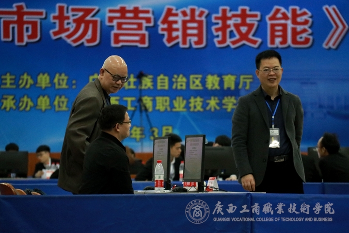 ?????? 3月23日下午,2019年廣西職業(yè)院校技能大賽高職組“市場(chǎng)營(yíng)銷技能”賽項(xiàng)于我院鵬飛校區(qū)文體館二樓如火如荼地進(jìn)行著。來自全區(qū)高校的30支參賽隊(duì)伍正在展開激烈角逐。
