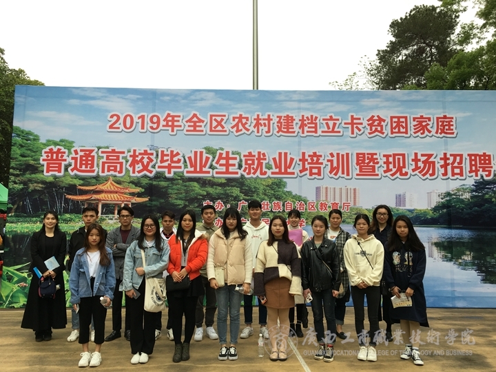 ? ? ? ? 3月23日上午,由自治區(qū)教育廳主辦、廣西民族大學(xué)承辦的廣西2019屆農(nóng)村建檔立卡貧困家庭普通高校畢業(yè)生第一期就業(yè)培訓(xùn)暨現(xiàn)場招聘會在燈光球場舉行,我院就業(yè)指導(dǎo)中心和各系負(fù)責(zé)就業(yè)工作的老師帶隊參加此次培訓(xùn)和現(xiàn)場招聘會。