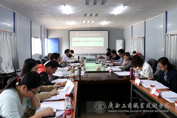 ??????? 2019年3月28日上午,學(xué)院根據(jù)工作日程安排,在武鳴新校區(qū)建設(shè)項(xiàng)目工地會(huì)議室召開學(xué)院黨委2019年第七次(擴(kuò)大)會(huì)議。學(xué)院黨委書記覃武云、院長陳杰、黨委副書記、紀(jì)委書記蒙啟成出席會(huì)議,學(xué)院黨委委員、各部門、各單位主要負(fù)責(zé)人參加會(huì)議。