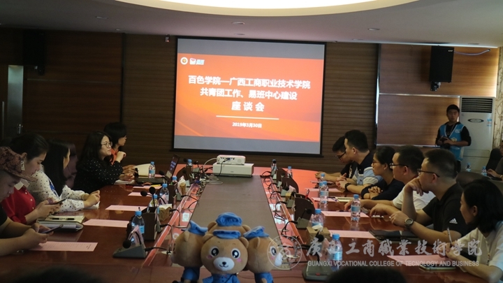 ? ? ? ? 我院團(tuán)學(xué)師生一行,首先來到百色學(xué)院易班發(fā)展中心和網(wǎng)絡(luò)思想政治工作中心進(jìn)行參觀學(xué)習(xí),在百色學(xué)院易班發(fā)展中心胡合老師的帶領(lǐng)下,參觀了網(wǎng)絡(luò)思想政治工作中心、易班工作室、紅色文化網(wǎng)絡(luò)陳列館、紅學(xué)易班等地,隨后,雙方舉行共青團(tuán)工作、易班發(fā)展中心建設(shè)座談會,會上,胡合老師就易班發(fā)展歷程、管理體制、平臺服務(wù)、易班優(yōu)課教學(xué)等建設(shè)內(nèi)容進(jìn)行簡要介紹,接著,百色學(xué)院學(xué)工部副部長、團(tuán)委書記徐洪剛對我院團(tuán)學(xué)師生一行的到來表示熱烈歡迎,并介紹了百色學(xué)院共青團(tuán)工作的經(jīng)驗和做法。我院團(tuán)委副書記趙婷介紹了學(xué)院發(fā)展、共青團(tuán)工作、團(tuán)學(xué)骨干培養(yǎng)等情況,最后,雙方圍繞團(tuán)干發(fā)展、資源整合、項目化建設(shè)等問題開展討論。