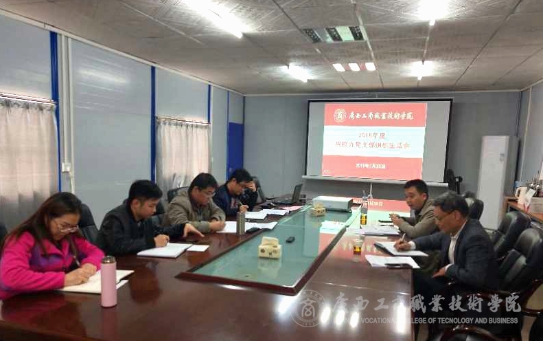 ??????? 近日,根據(jù)學院黨委統(tǒng)一部署,鳴校辦黨支部在武鳴新校區(qū)會議室召開了2018年度組織生活會并開展民主評議黨員活動。會議由鳴校辦支部書記廖顯圖主持,全體黨員參加了會議。