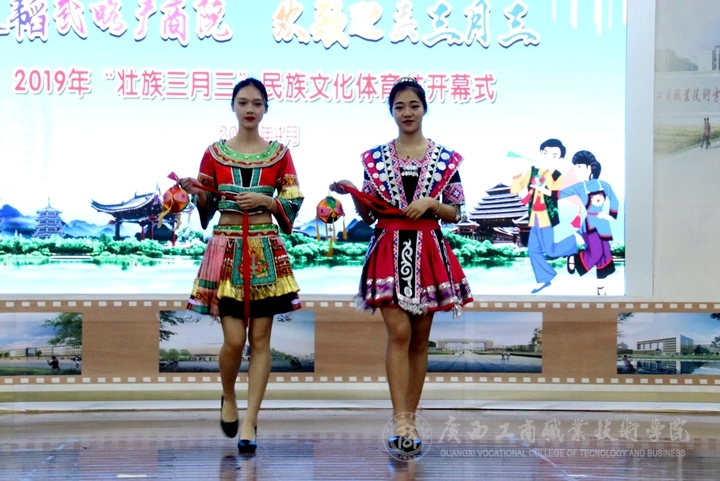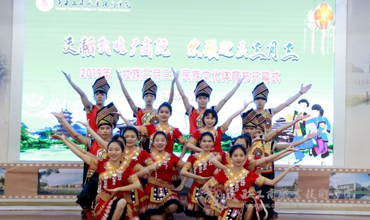 2019年4月2日下午,廣西工商職業(yè)技術(shù)學(xué)院于鵬飛校區(qū)文體館一樓開展“壯族三月三”民族文化體育節(jié)開幕式活動。學(xué)院黨委副書記、紀(jì)委書記蒙啟成出席開幕式并做題為《文韜武略廣商院,歡歌迎慶三月三——“壯族三月三”民族文化報(bào)告》。各部門、各單位主要負(fù)責(zé)人、教師代表、學(xué)生代表參加開幕式,本次活動由梁曉霞老師和梁言騰同學(xué)共同主持。
