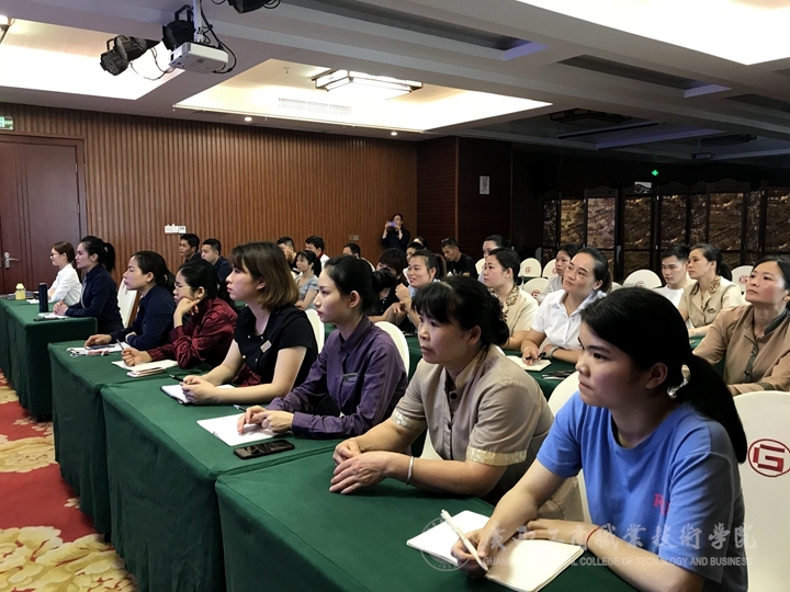 ? ? ? ? 2019年4月10日下午,我院繼續(xù)教育部為擴(kuò)大社會(huì)服務(wù),提升為社會(huì)服務(wù)能力,應(yīng)格萊美大酒店邀請(qǐng),特派經(jīng)管系酒店管理專業(yè)帶頭人莫小芳老師到格萊美大酒店,對(duì)酒店80余名員工進(jìn)行酒店基礎(chǔ)禮儀培訓(xùn)。講座由格萊美大酒店葉美璟經(jīng)理主持,莫小芳老師主要就儀容禮儀、儀表禮儀、儀態(tài)禮儀、問(wèn)候禮儀、名片禮儀、介紹禮儀、電話禮儀與技巧等方面的知識(shí)進(jìn)行了全面系統(tǒng)的培訓(xùn)。