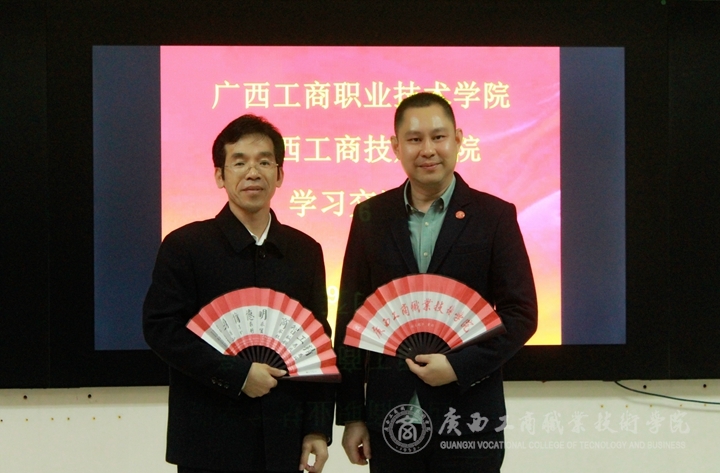 ? ? ? ? 最后,陳寧春副院長向廣西工商技師學院贈送廣商院文化扇。通過本次學習考察,進一步加強了與廣西工商技師學院的交流和聯(lián)系,為下一步深入合作奠定了基礎。