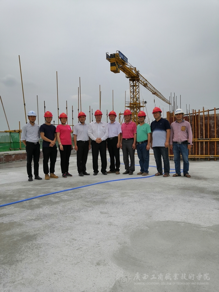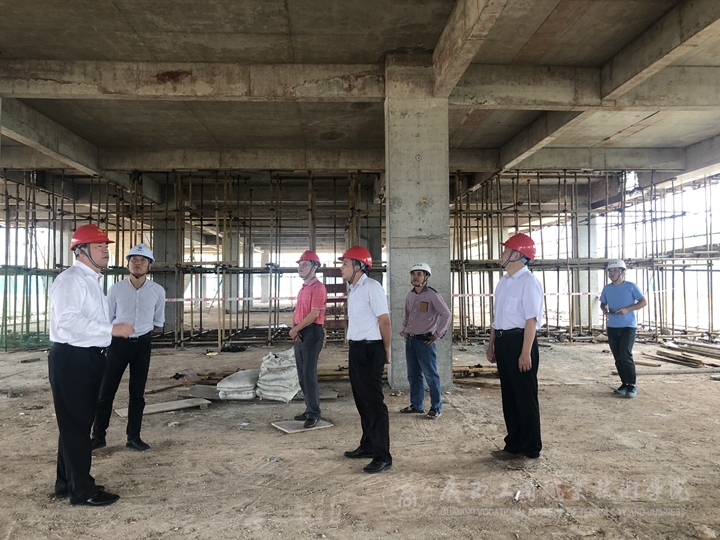 ??????? 2019年5月22日上午,我院武鳴校區(qū)一期工程行政綜合樓(東A-7棟)順利封頂,學(xué)院院長陳杰現(xiàn)場視察、指導(dǎo)建設(shè)工作。副院長李仕欽、武鳴校區(qū)建設(shè)指揮部辦公室全體工作人員及參建單位相關(guān)負(fù)責(zé)同志陪同視察。