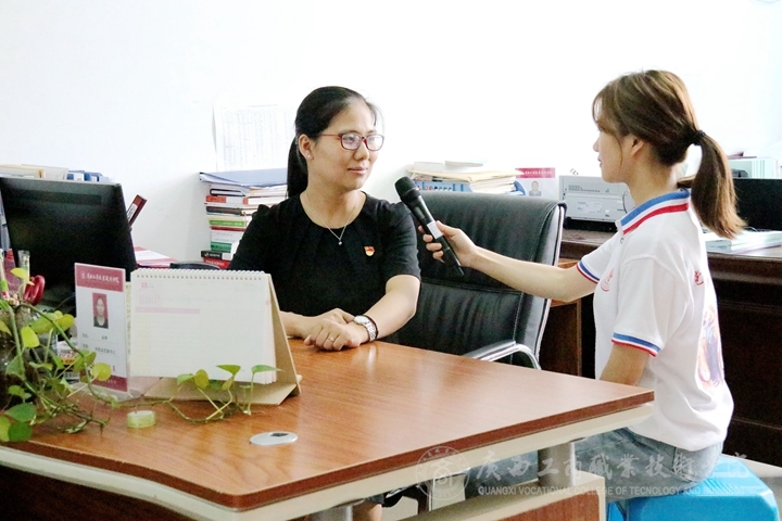 ? ? ? ? 2019年6月13日下午,學(xué)院新聞中心記者陸柳柳于廣西工商職業(yè)技術(shù)學(xué)院鵬飛校區(qū)辦公室,對(duì)我院獲批廣西高校思想政治教育杰出人才支持計(jì)劃第一期培養(yǎng)對(duì)象的趙婷老師進(jìn)行專訪。