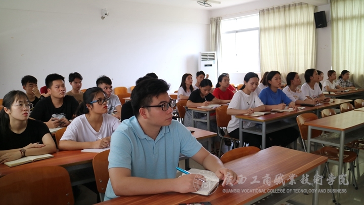? ? ? ? 根據院黨辦發(fā)〔2019〕14號(中共廣西工商職業(yè)技術學院委員會辦公室關于印發(fā)《廣西工商職業(yè)技術學院創(chuàng)建“新時代講習所”工作實施方案》的通知)文件精神,為進一步學習貫徹習近平新時代中國特色社會主義思想,引導廣大干部群眾和師生學理論、用政策、促發(fā)展,激發(fā)干事創(chuàng)業(yè)的積極性、創(chuàng)造性,把習近平新時代中國特色社會主義思想和黨的十九大精神落實到各方面,2019年6月12日中午,經管系黨總支“新時代講習所”正式開講,經管系黨總支書記莫春華同志首講,經管系團總支副書記歐少亮同志以及第五屆精英班學生參加了此次課程。