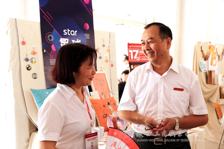 ??????? 參觀展演過(guò)程中,覃武云書(shū)記在與學(xué)生交流、觀看學(xué)生的作品展示之后充分肯定了同學(xué)們?nèi)〉玫某煽?jī)和敢于創(chuàng)新的精神。