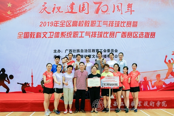 ? ? ? ? 自治區(qū)總工會(huì)教育工會(huì)舉辦2019年全區(qū)高校教職工氣排球比賽暨全國(guó)教科文衛(wèi)體系統(tǒng)職工氣排球比賽廣西賽區(qū)選拔賽,于2019年6月30日-7月2日開(kāi)打。學(xué)院工會(huì)高度重視,精心組織,克服困難,選調(diào)最佳陣容,派出甲(黨政工隊(duì))、乙(男隊(duì))、丙(女隊(duì))三隊(duì),女隊(duì)喜獲高職院校第一名、2019年全區(qū)高校教職工氣排球比賽暨全國(guó)教科文衛(wèi)體系統(tǒng)職工氣排球比賽廣西賽區(qū)選拔賽丙組(女子組)第七名。