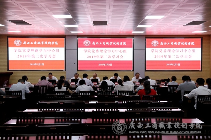 ? ? ? ? 7月1日上午,學院黨委理論學習中心組2019年第二次學習會于鵬飛校區(qū)視頻會議室召開。學院黨委書記覃武云主持學習會并作總結發(fā)言,院長李維,黨委副書記、紀委書記蒙啟成,副院長李仕欽,副院長陳寧春出席了本次學習會。學院各部門主要負責人,學院各黨總支、直屬黨支部書記,學院工會、團委負責人參加了本次學習會。